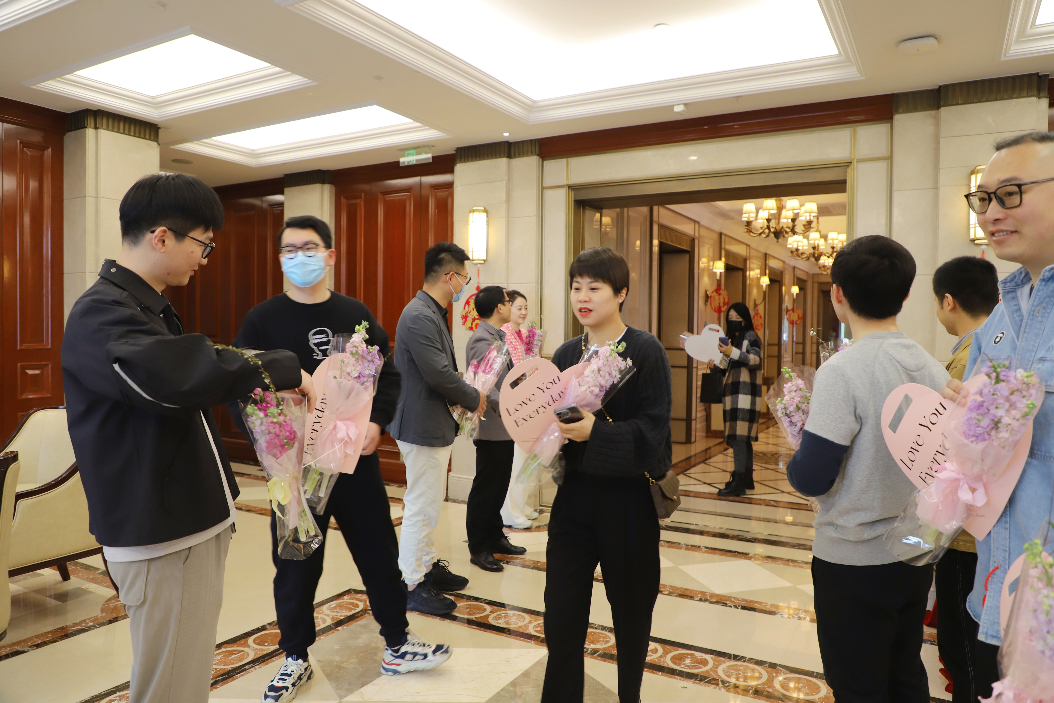 公司帥氣的男同胞為女同事們送去了節(jié)日花束、節(jié)日祝福,還有專屬定制的“遇見美好”小禮品?!澳銈冋娴奶行牧?,突然感覺今天的上班都變得有儀式感了?!币晃粺崧?lián)女員工表示。